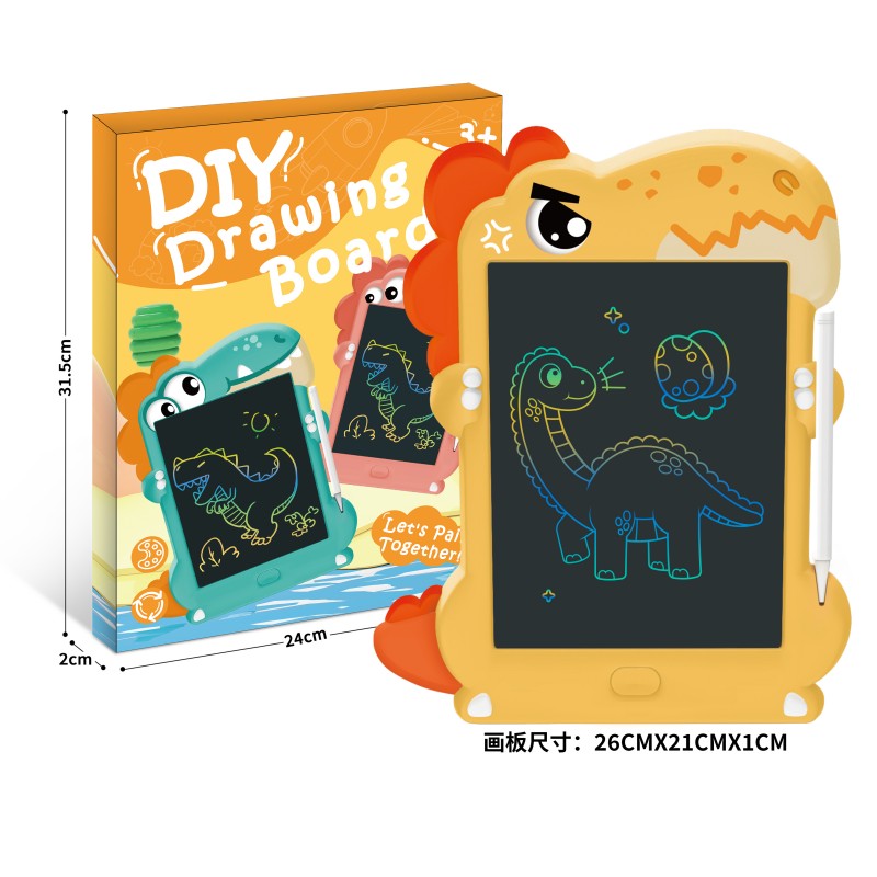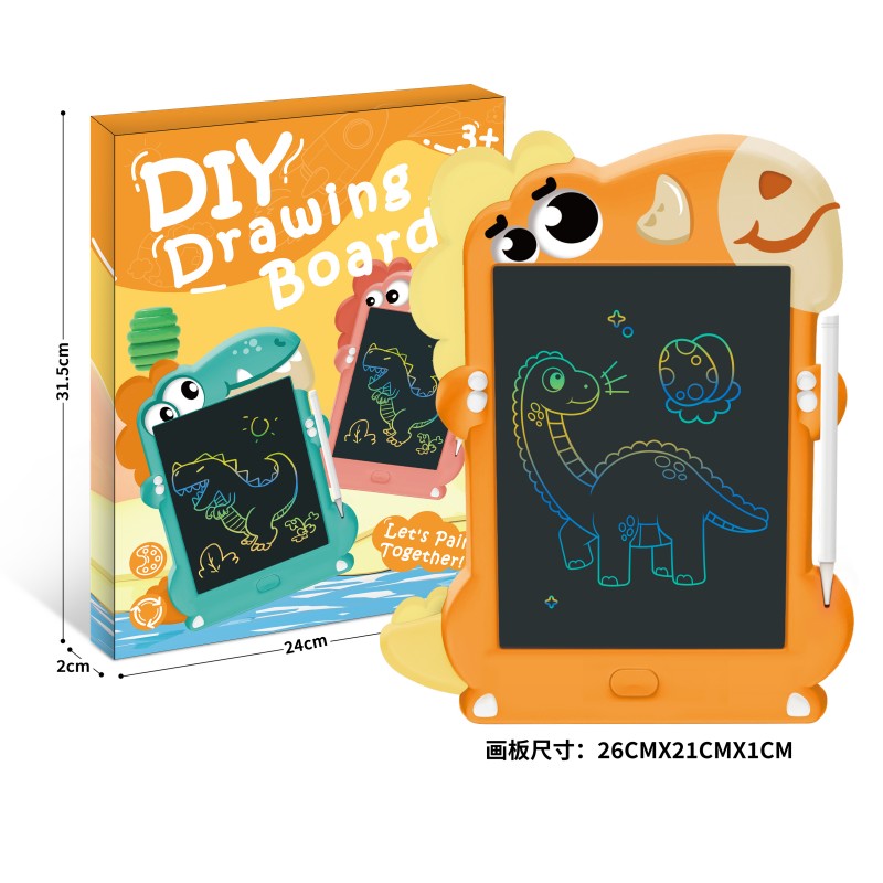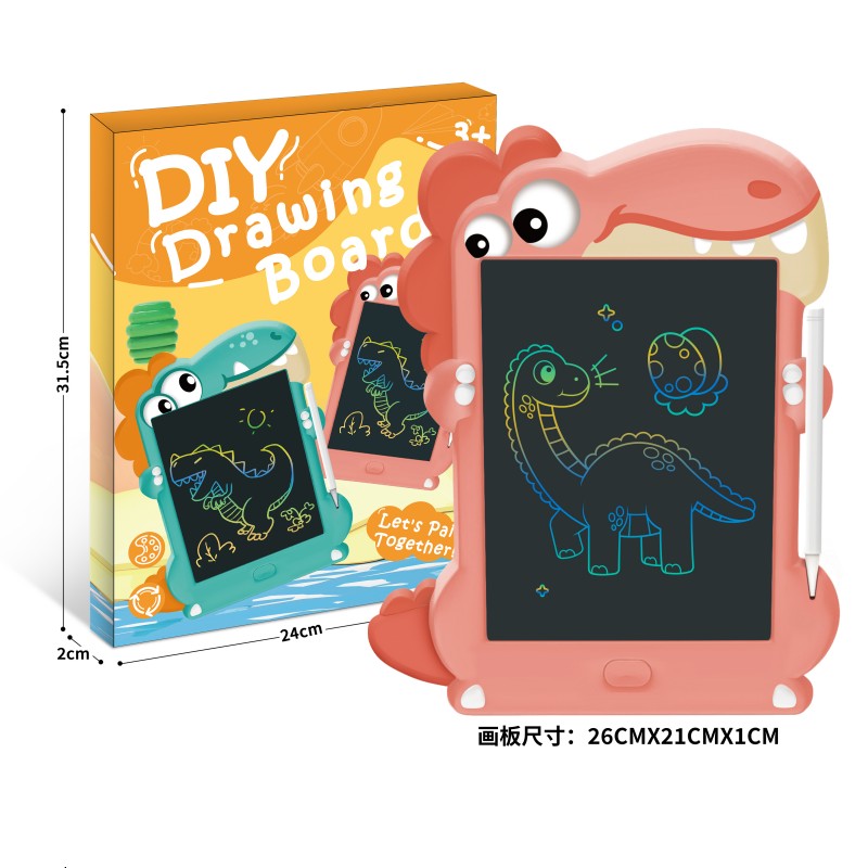 Reusable LCD writing tablet with fun dinosaur design—perfect for kids’ doodling, learning, and creative play.